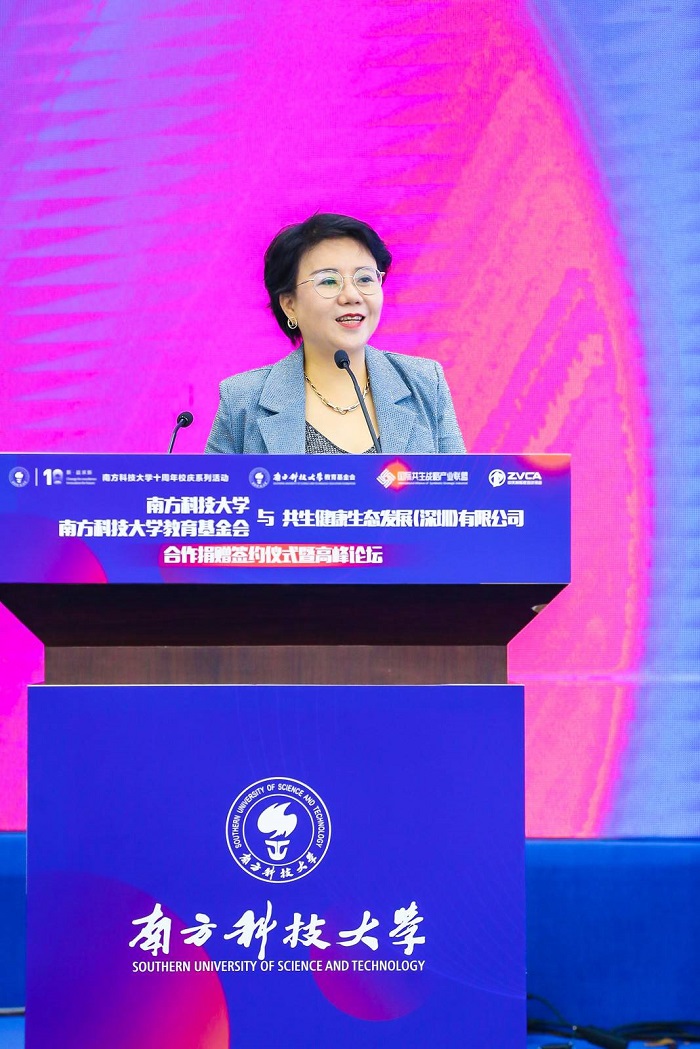 國際共生產(chǎn)業(yè)戰(zhàn)略聯(lián)盟執(zhí)行理事長、剛剛履新南方科技大學(xué)教育基金會(huì)聯(lián)合拓展秘書長的劉丹寧女士做精彩發(fā)言。