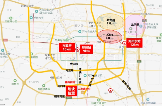 該地塊位于鄭州市主城區(qū)大學(xué)路與南四環(huán)交匯處,占地面積約4.7萬(wàn)平方米,計(jì)容面積約14萬(wàn)平方米。地塊周邊擁有地鐵7號(hào)線和多條城市主干道經(jīng)過(guò),交通條件優(yōu)越。同時(shí),鑫苑都匯廣場(chǎng)、南環(huán)公園、鄭州市第二人民醫(yī)院、鄭州市第二初級(jí)中學(xué)等優(yōu)質(zhì)生活配套匯集。
