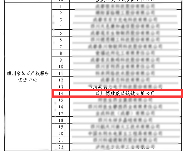 德勝釩鈦自2013年成為四川省知識產權優(yōu)勢培育企業(yè)以來,牢固樹立“抓創(chuàng)新就是抓發(fā)展,謀創(chuàng)新就是謀未來”的創(chuàng)新理念,以知識產權保護創(chuàng)新成果為著力點,強力推進知識產權工作,十年風雨兼程,從國家知識產權優(yōu)勢企業(yè)成為了示范企業(yè)。公司先后打造了高新技術企業(yè)、四川省企業(yè)技術中心、釩應用技術推廣中心等10多個創(chuàng)新平臺,取得了一系列豐碩的創(chuàng)新成果。通過省、市級成果鑒定(評價)10項,獲得國家、省、市級科技進步獎9項,其中國家冶金科學技術獎一等獎一項。獲得授權專利453項,其中發(fā)明專利88件。獲得計算機軟件著作權登記1件,實現(xiàn)零突破。自2017年起連續(xù)五年入榜四川企業(yè)技術創(chuàng)新發(fā)展能力100強、發(fā)明專利100強前列企業(yè),2019年起連續(xù)三年位列“中國鋼鐵企業(yè)專利創(chuàng)新指數(shù)綜合得分”前列和“中國鋼鐵企業(yè)較強專利創(chuàng)新力企業(yè)”。