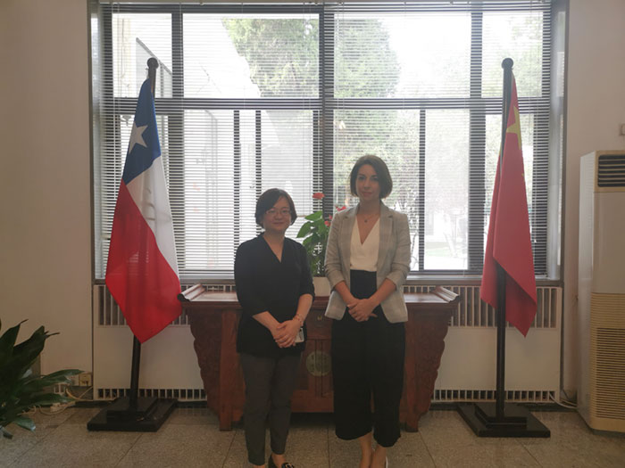 On the afternoon of September 14,2020, Lin Lin, the Secretary General of ZVCA, visited the commercial office at the invitation of Ms. Natalia Garcia, commercial counselor of the Chilean Embassy in China. This is another meeting after the establishment of a strategic partnership between ZVCA and the General Administration of international economic affairs of the Ministry of Foreign Affairs of Chile, in the presence of his Excellency the President of Chile in 2019.