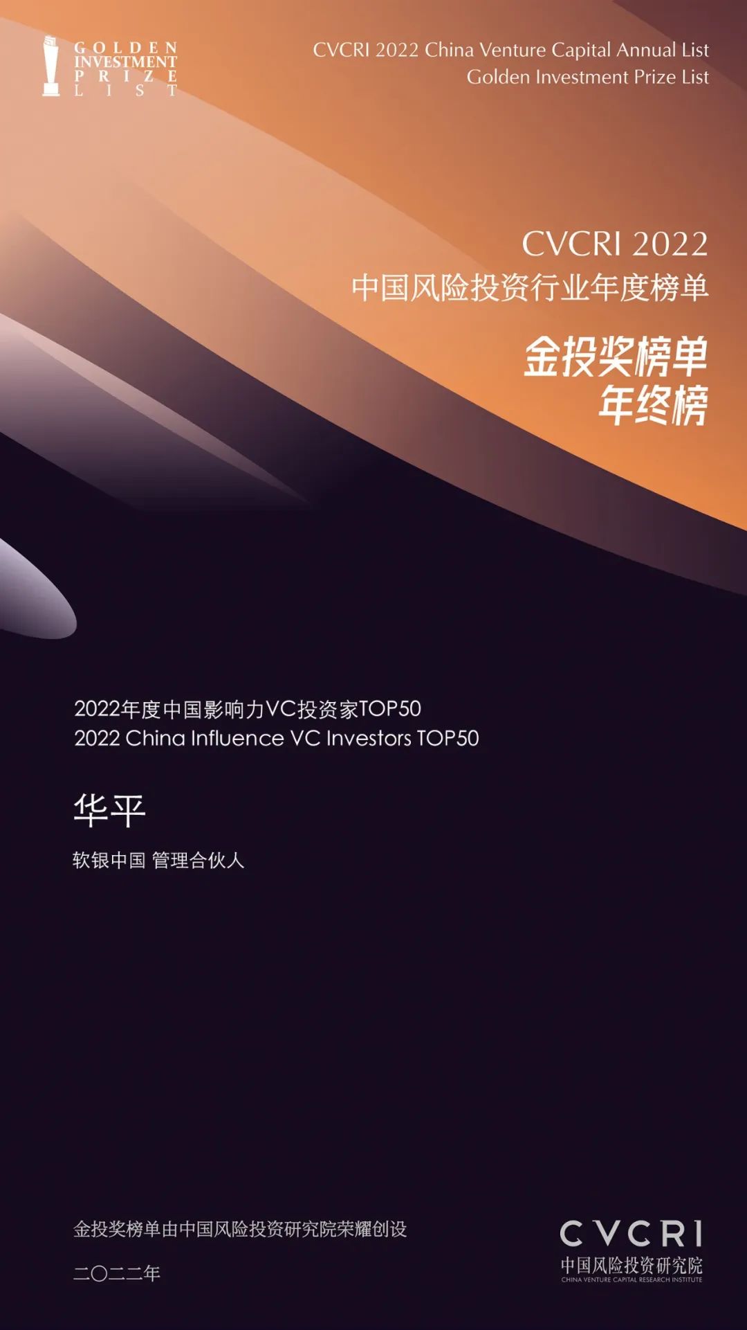 Dr. Hua Ping, China Capital Management Partner of Softbank, was awarded: