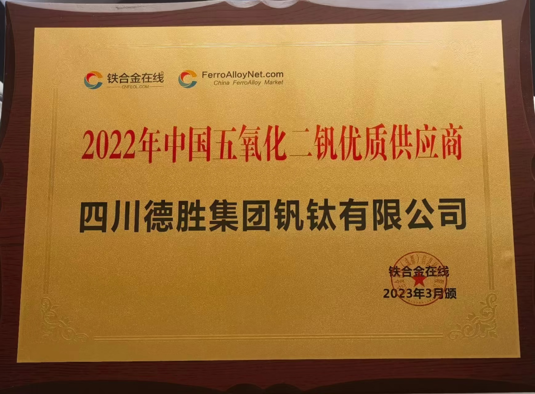 Sichuan Desheng Group Vanadium Titanium Co., Ltd won the title of "2022 High Quality Supplier of V205"