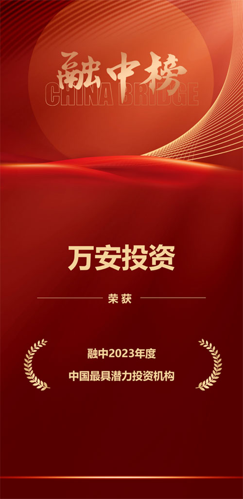 On January 18th, the 2024 (13th) China Bridge Capital Market Annual Conference came to an end in Beijing, and the "China Bridge 2023 China Equity Investment Annual Comprehensive List" was grandly announced. Wanan Investment was awarded the Most Promising Investment Institution in China for 2023.
