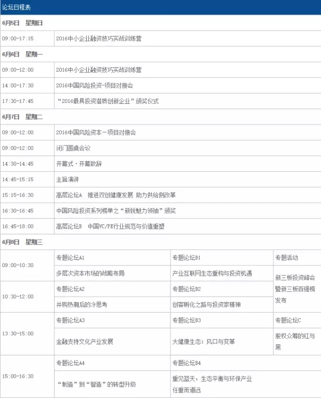 第十八屆中國(guó)風(fēng)險(xiǎn)投資論壇議程: