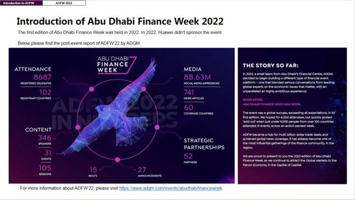 “阿布扎比金融科技周”(ADFW)預(yù)計(jì)將迎來(lái)來(lái)自100多個(gè)國(guó)家的一萬(wàn)名商界領(lǐng)袖、3500多名來(lái)自全球頂級(jí)金融公司的與會(huì)者、行業(yè)專(zhuān)家、政策制定者、監(jiān)管者、投資者和銀行家等不同的觀眾和利益相關(guān)者。ADFW將以開(kāi)幕式拉開(kāi)帷幕,并將推出系列活動(dòng)中最新的子活動(dòng):阿布扎比經(jīng)濟(jì)論壇將聚集高層管理人員和決策者,并在一組獨(dú)家觀眾面前討論宏觀經(jīng)濟(jì)話題,全球知名的《財(cái)富》2023全球領(lǐng)袖峰會(huì)也將拉開(kāi)帷幕。ADFW將繼續(xù)舉辦Asset Abu Dhabi第二屆展會(huì),這屆展會(huì)將升級(jí)為全球私募市場(chǎng)最強(qiáng)大的領(lǐng)導(dǎo)組合之一。