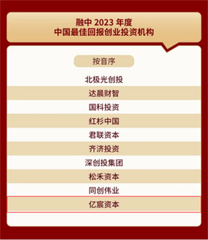 億宸資本榮獲融中「2023年度中國最佳回報創(chuàng)業(yè)投資機構TOP10」等3項榮譽