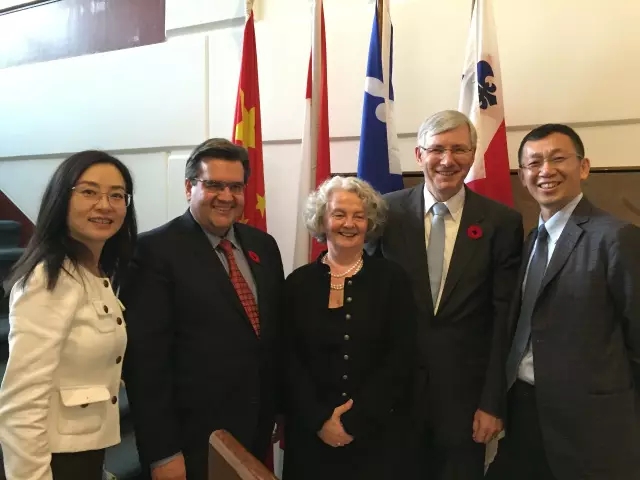 由右至左:中關(guān)村股權(quán)投資協(xié)會(huì)會(huì)長(zhǎng) 王少杰、加拿大駐華使館趙樸大使和夫人、蒙特利爾市長(zhǎng)德尼 科岱爾、中關(guān)村股權(quán)投資協(xié)會(huì)副秘書長(zhǎng) 張麗