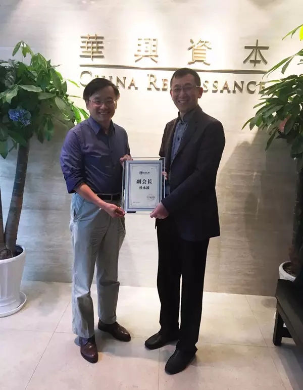 華興資本董事總經(jīng)理杜永波先生出任協(xié)會副會長,會長王少杰先生親自頒發(fā)會員證書。