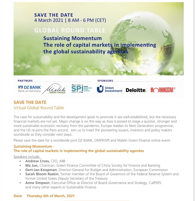 Sustaining Momentum: The role of capital markets in implementing the global sustainability agendas